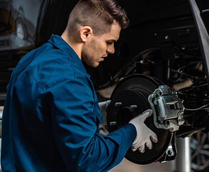 Your automobile’s brake system should be inspected annually to ensure everything is in good working order. Brakes over time will wear out, so eventually they will need replacement. Catching brake problems before you reach the metal-to-metal point (likely to mean replacement of rotors or drums) may save you money, so if you have any of the common symptoms of brake trouble, have your brakes checked promptly by a Jacksonville & St. Mary’s AAMCO mechanic. Symptoms of brake trouble include squealing brakes, a spongy or hard pedal when you press on the brakes or grinding brakes. your local Jacksonville & St. Mary’s AAMCO auto repair shop offers a wide array of services for brakes, from inspections to brake fluid changes to complete brake jobs.